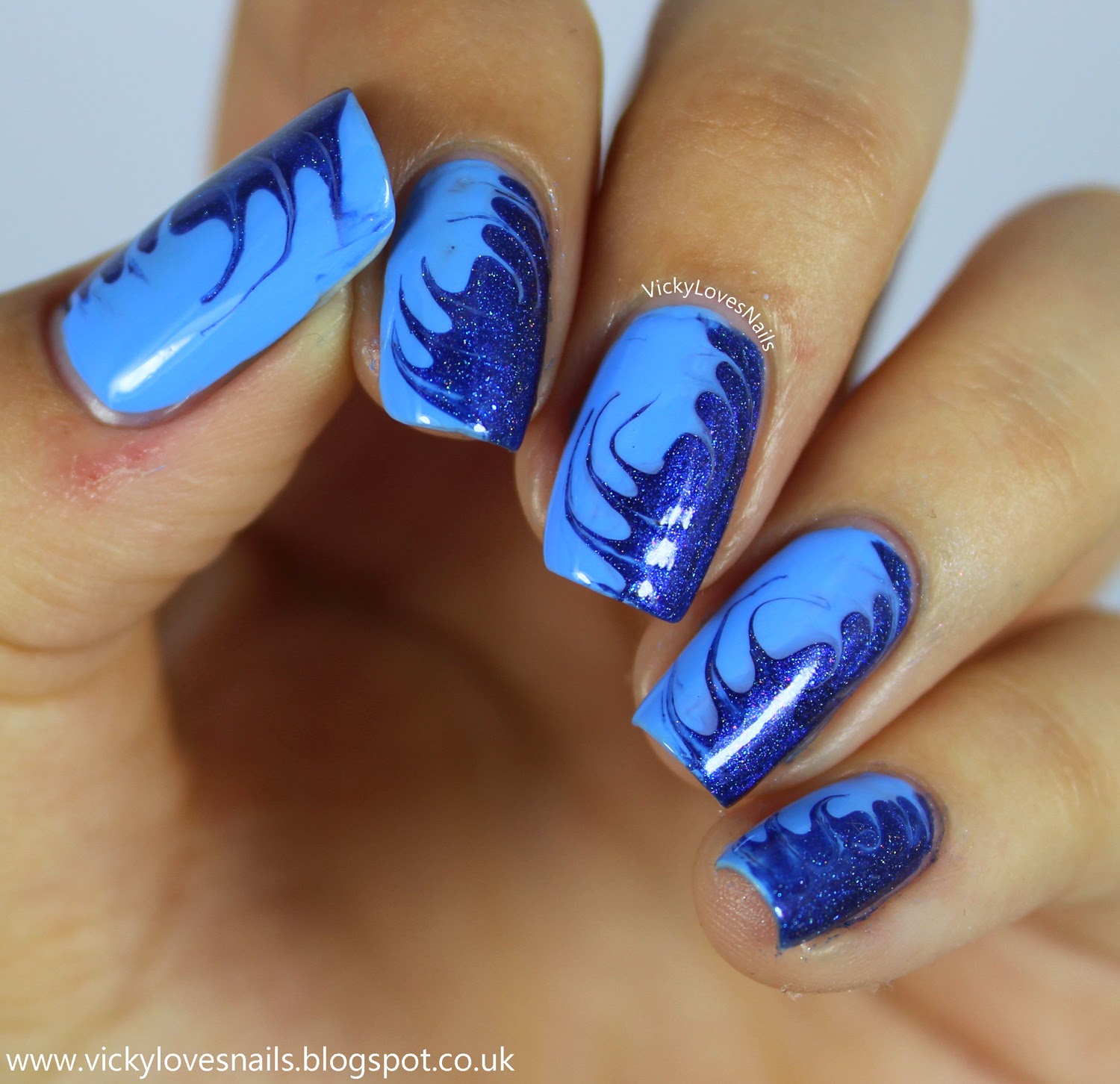 To create this effect I painted thick coats of my two colours next to each other and whilst they were still wet I used a toothpick to swirl my colours together. I went for a circular pattern which reminded me of a whirl pool.. so I've named this my whirlpool drag marble. I originally saw someone on IG do this, I have completely forgotten who but this wasn't my original idea. The colours I used were Barry M - Blueberry and ILNP - Summer Stargazing.